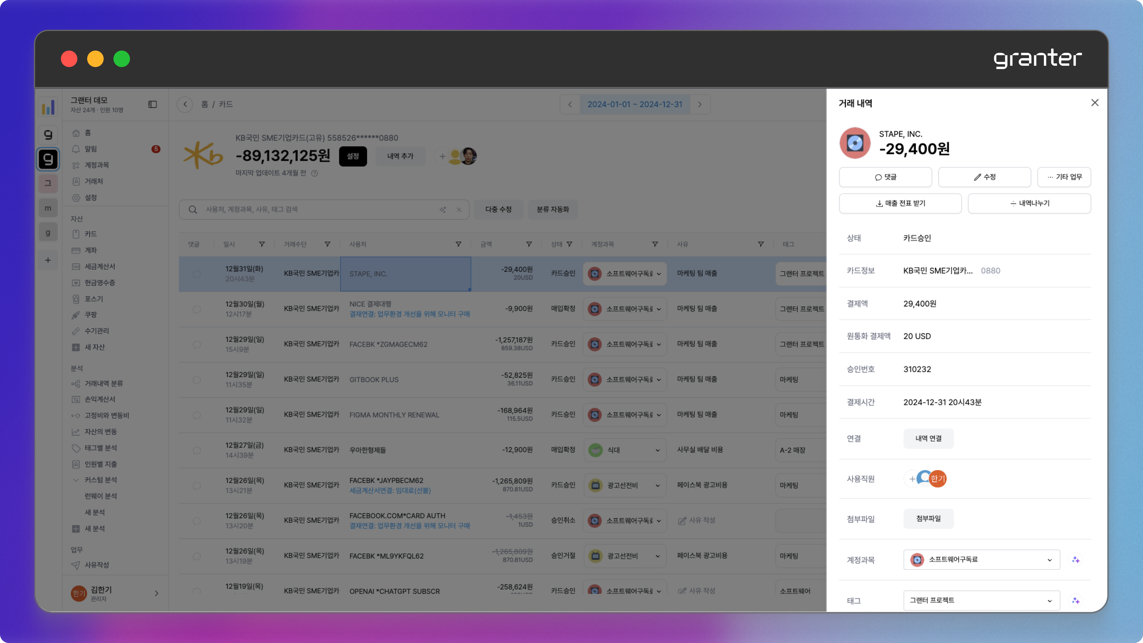 * 다중 수정 : 복수의 거래 내역의 계정과목/태그/상세태그/사유 등의 내역을 일괄적으로 적용할 수 있어요.